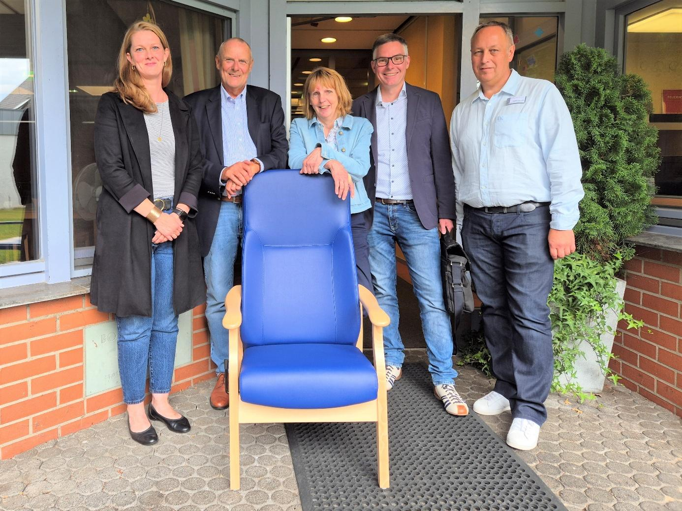 19.08.2025. Das Boysenhaus in Bielefeld Eckardtsheim ist eine Senioreneinrichtung der besonderen Art. In der Trägerschaft der von Bodelschwinghschen Stiftungen Bethel werden hier rund 60 ältere Menschen betreut, deren Leben lange von Obdachlosigkeit oder Suchterkrankungen geprägt war. Und anders als in anderen Altenpflegeeinrichtungen gehören hier die Raucherzimmer in den Wohngruppen zum Alltag. Mit Unterstützung der Marta-Kleine-Eikelmann-Stiftung konnten jetzt sechs neue Sessel für zwei der drei Wohngruppen angeschafft werden. Der besondere Clou: Ihr Material ist feuerfest und damit bestens geeignet für die Raucherräume.